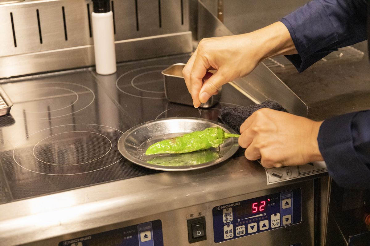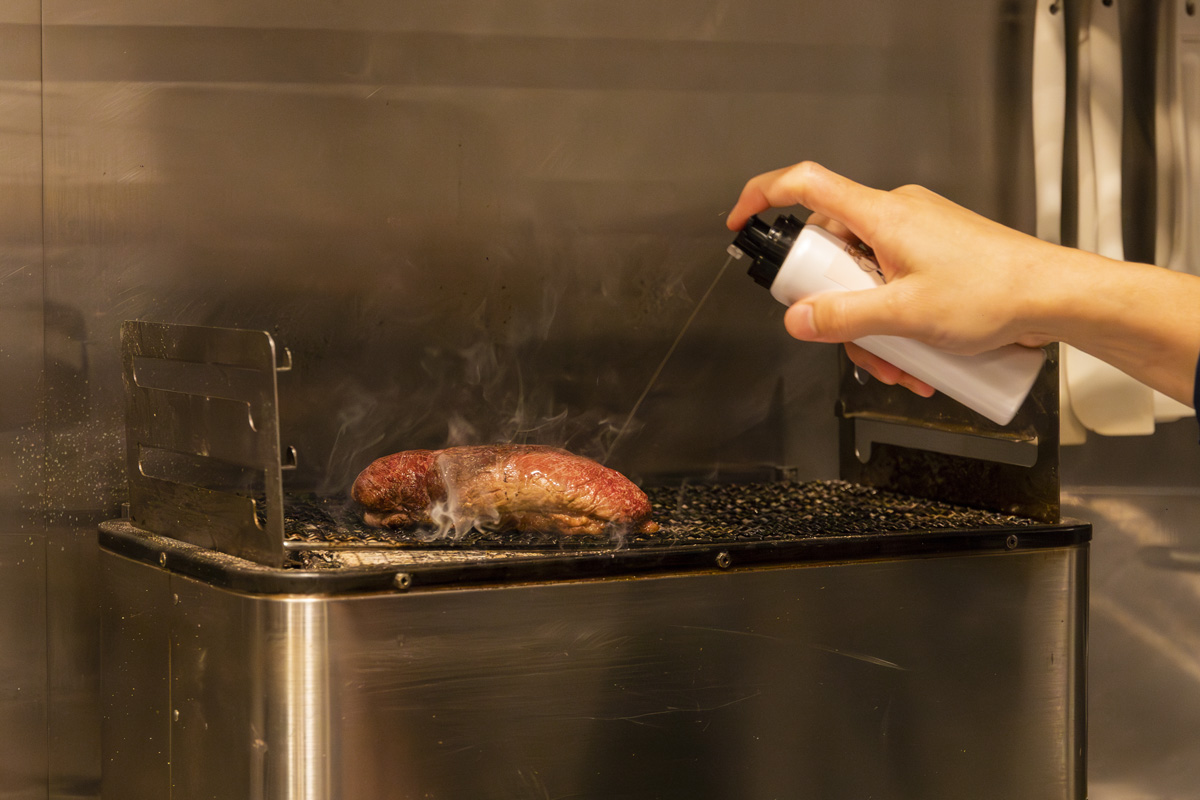 「刷毛でオイルを塗ると食材表面のうま味や塩を拭ってしまうこともあるのですが、スプレーなら直接食材に触れないので、それらを残しつつ香りを纏わせることができるのも良いですね」 (野田さん)