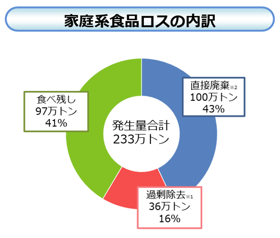 内訳を見ると、事業系が231万トン、家庭系が233万トンとほぼ半々の割合となっており、家庭からのフードロスも決して少なくないことが分かります。