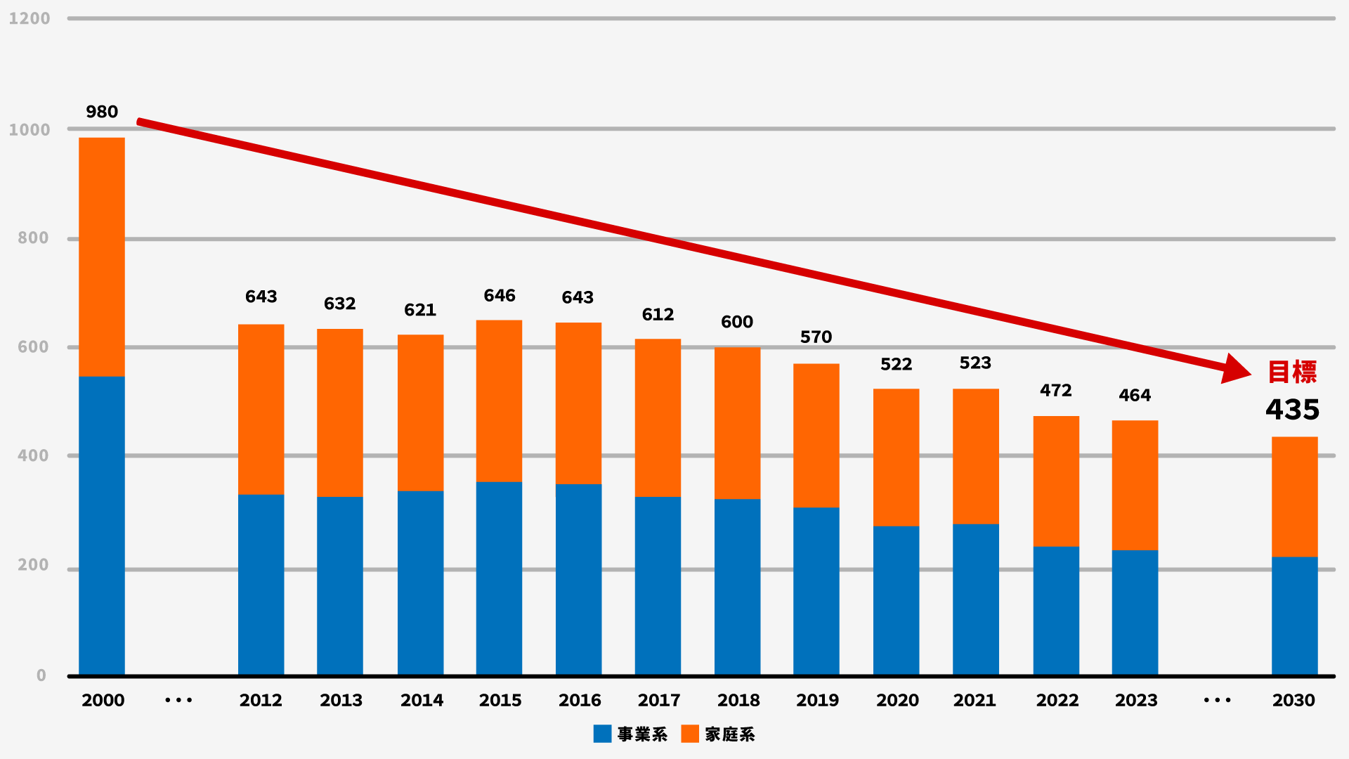 一方、家庭系についても着実に減少傾向にあり、50%削減目標の早期達成が期待されています。