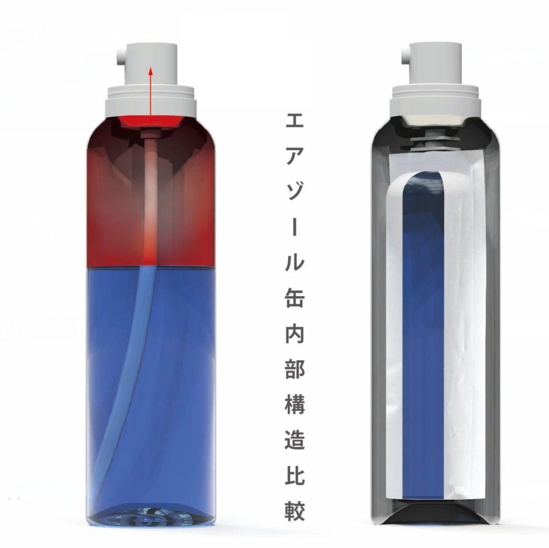 エアゾール製品は内容物を密閉し外気と遮断する構造が特徴とされています。BOVは、このエアゾール製品の密閉構造の考え方をさらに発展させた方式です。